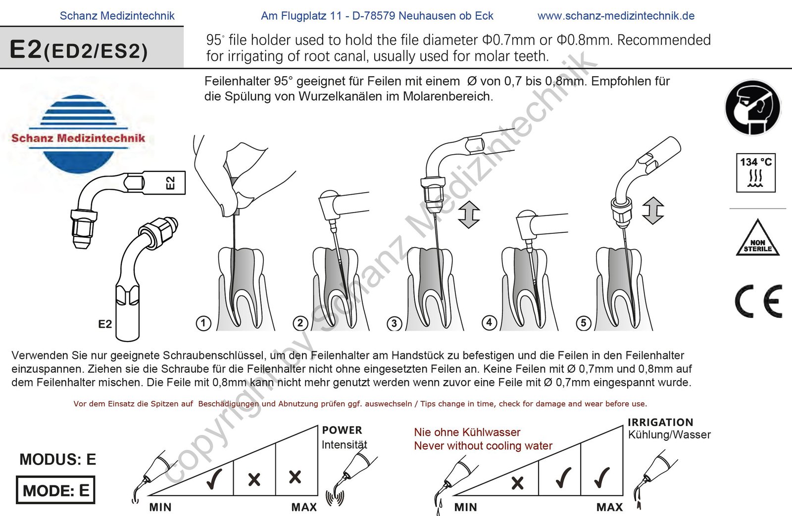 Produktinformationen “ES2 Ultraschallspitze Feilenhalter Endodontie 95°”